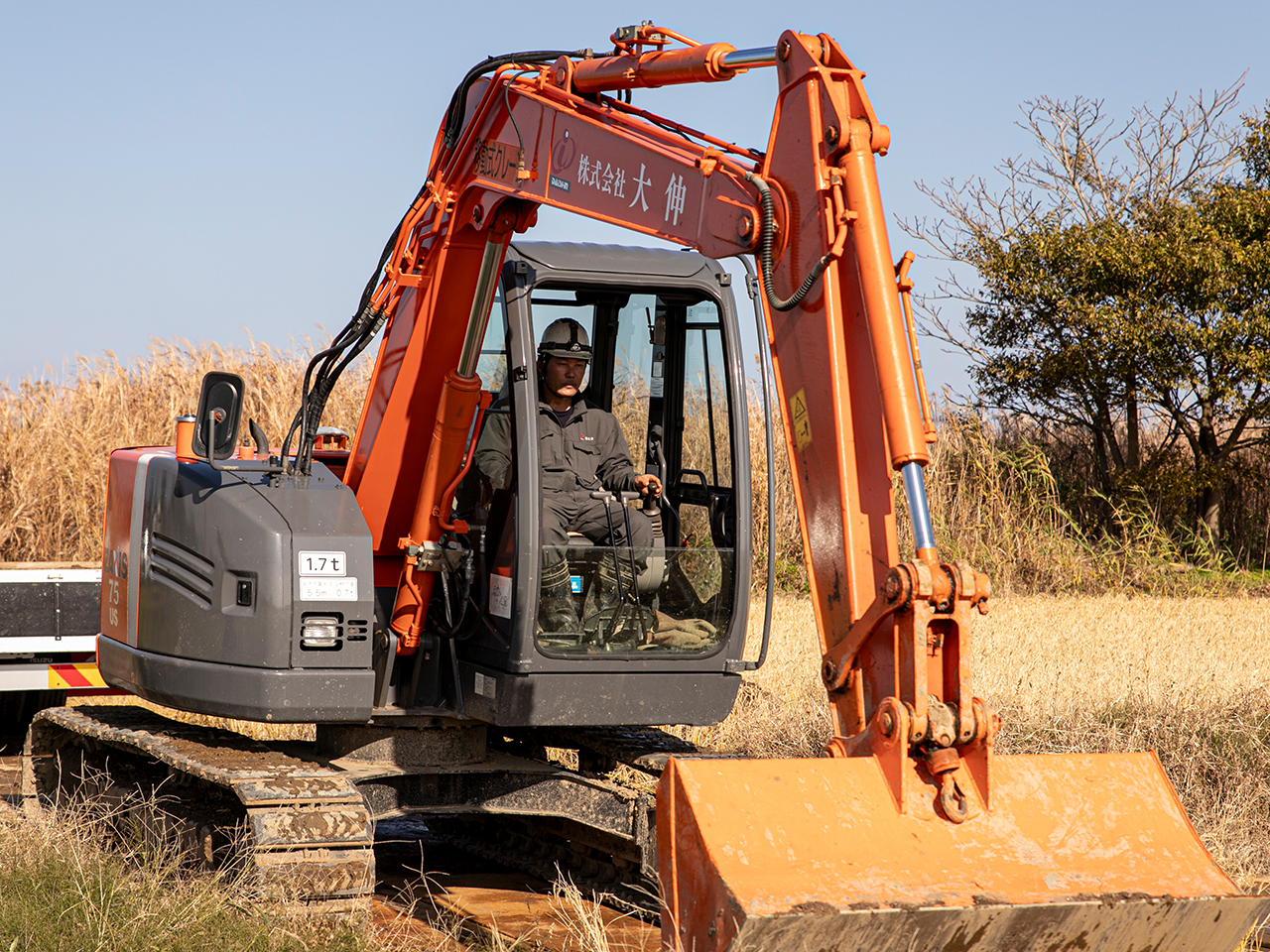 主に重機オペレーターとして、掘削や整地など現場の基盤を作る作業を担当しています。
