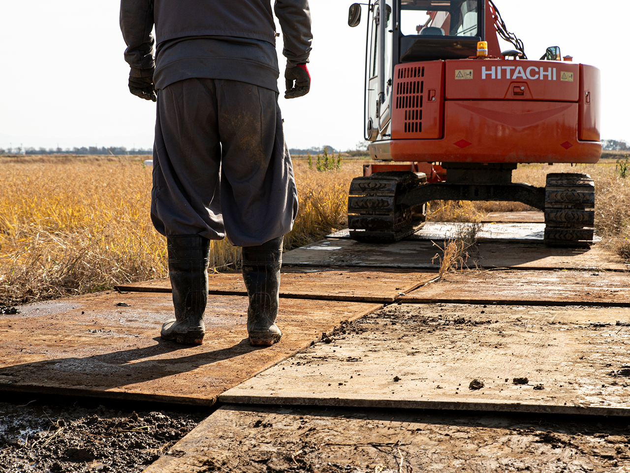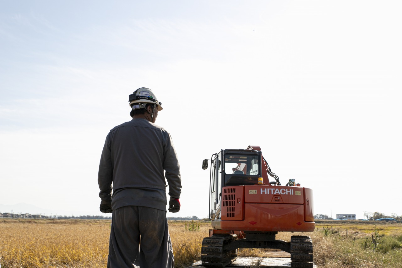 現在は、農業用排水路の工事を行っています。これは農家さんが田んぼを使用しない時期にしかできないため、10月下旬頃から天候によりますが年明けまで続く工事です。